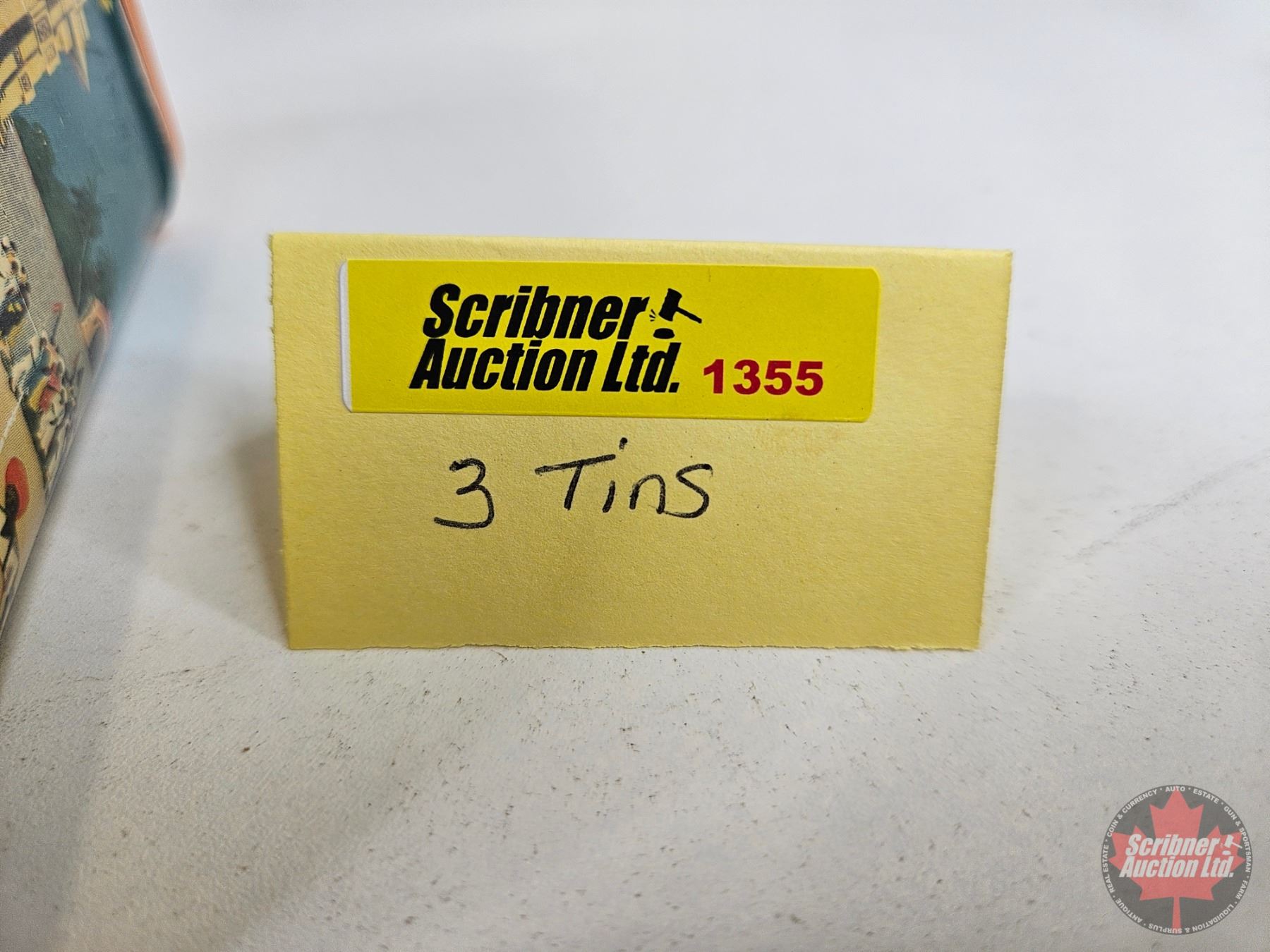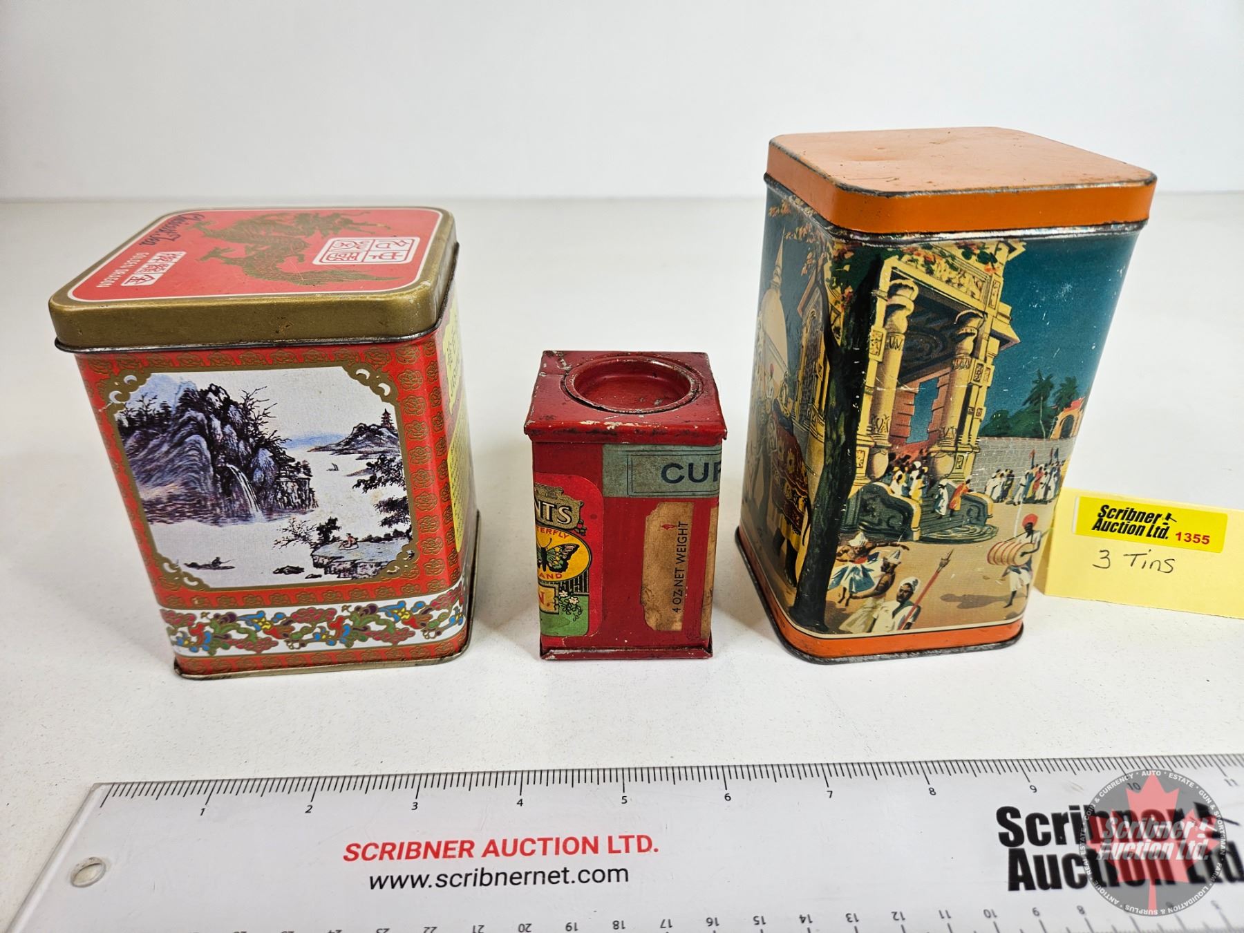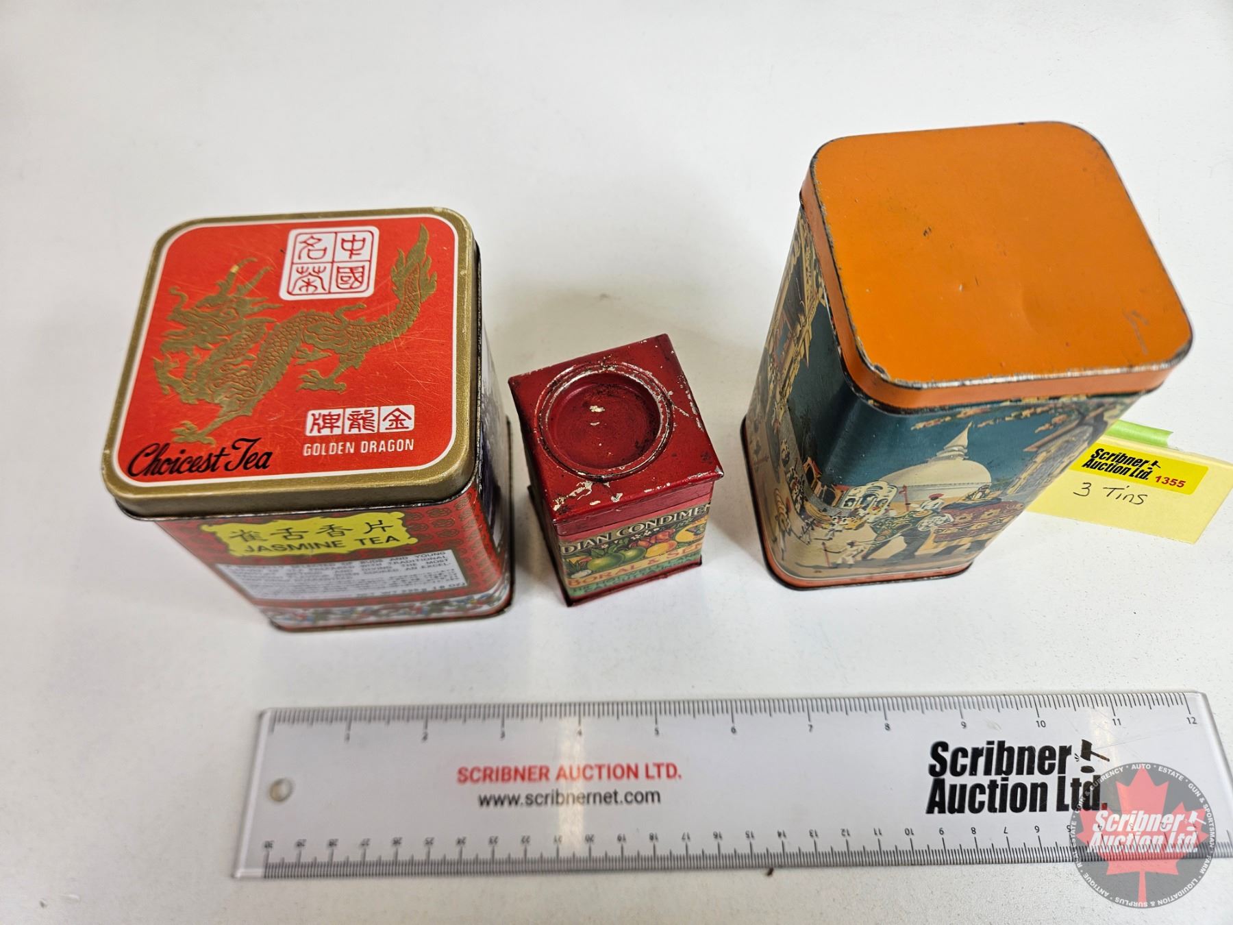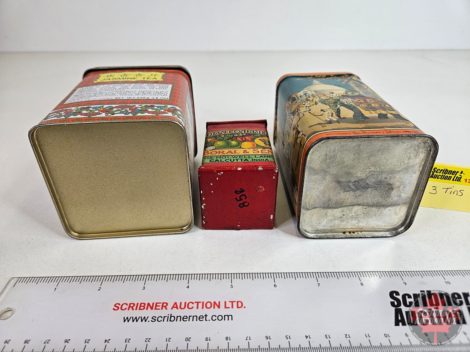 Tins (3) : Tea & Curry (Largest Measures: 5-1/2" x 3" x 3")
