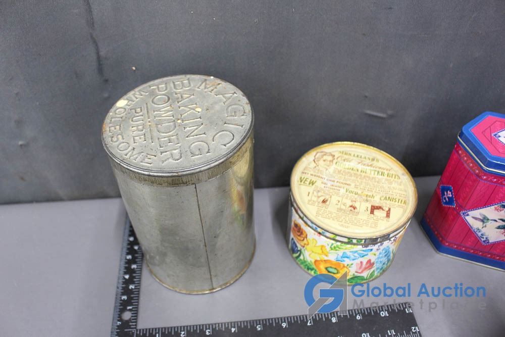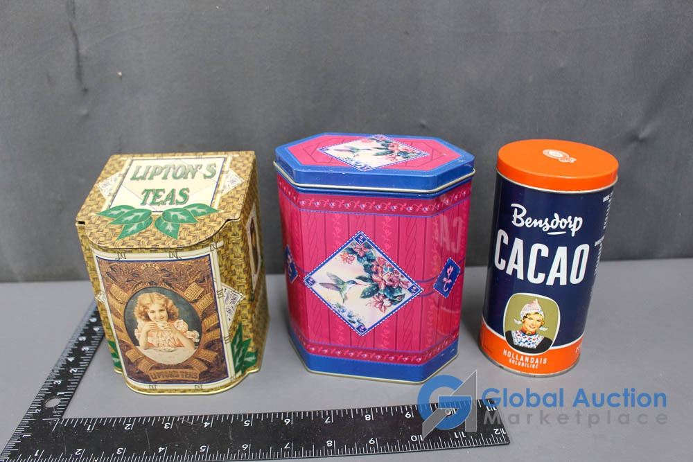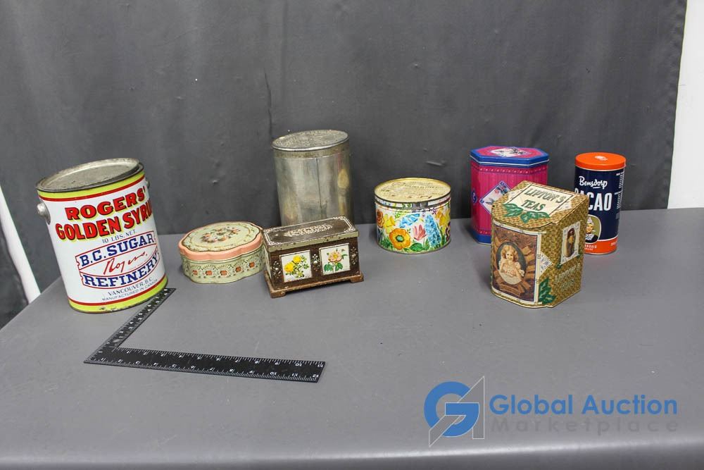 Tins - Lipton's Tea, Rogers Syrup, Magic Baking Powder, Bensdorp Cacao