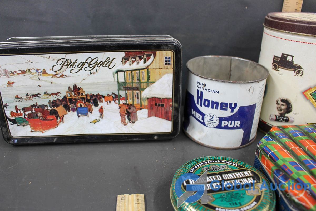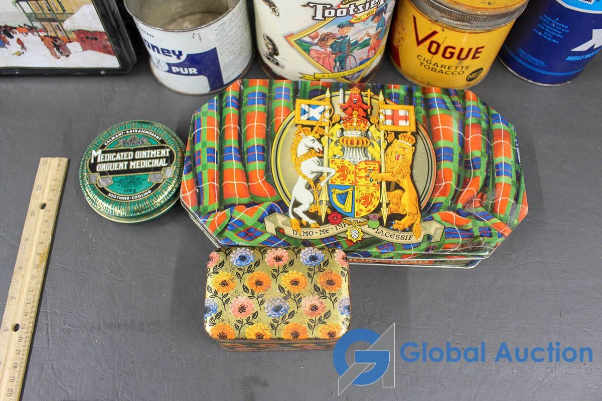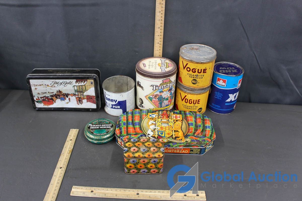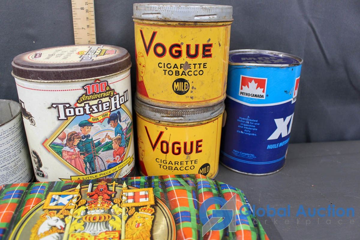 Tins - Tobacco, Tootsie Roll, Pot of Gold, Oil, Shortbread, etc.