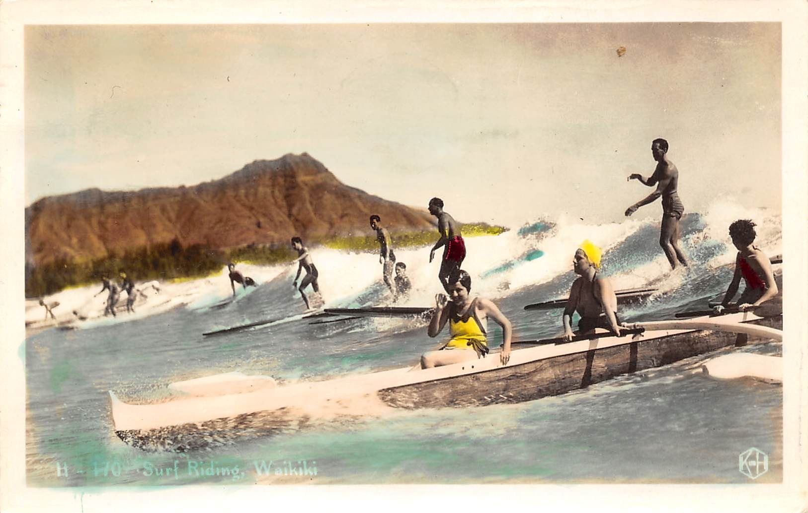 Tinted Photo Surf Riding at Diamond Head Postcard