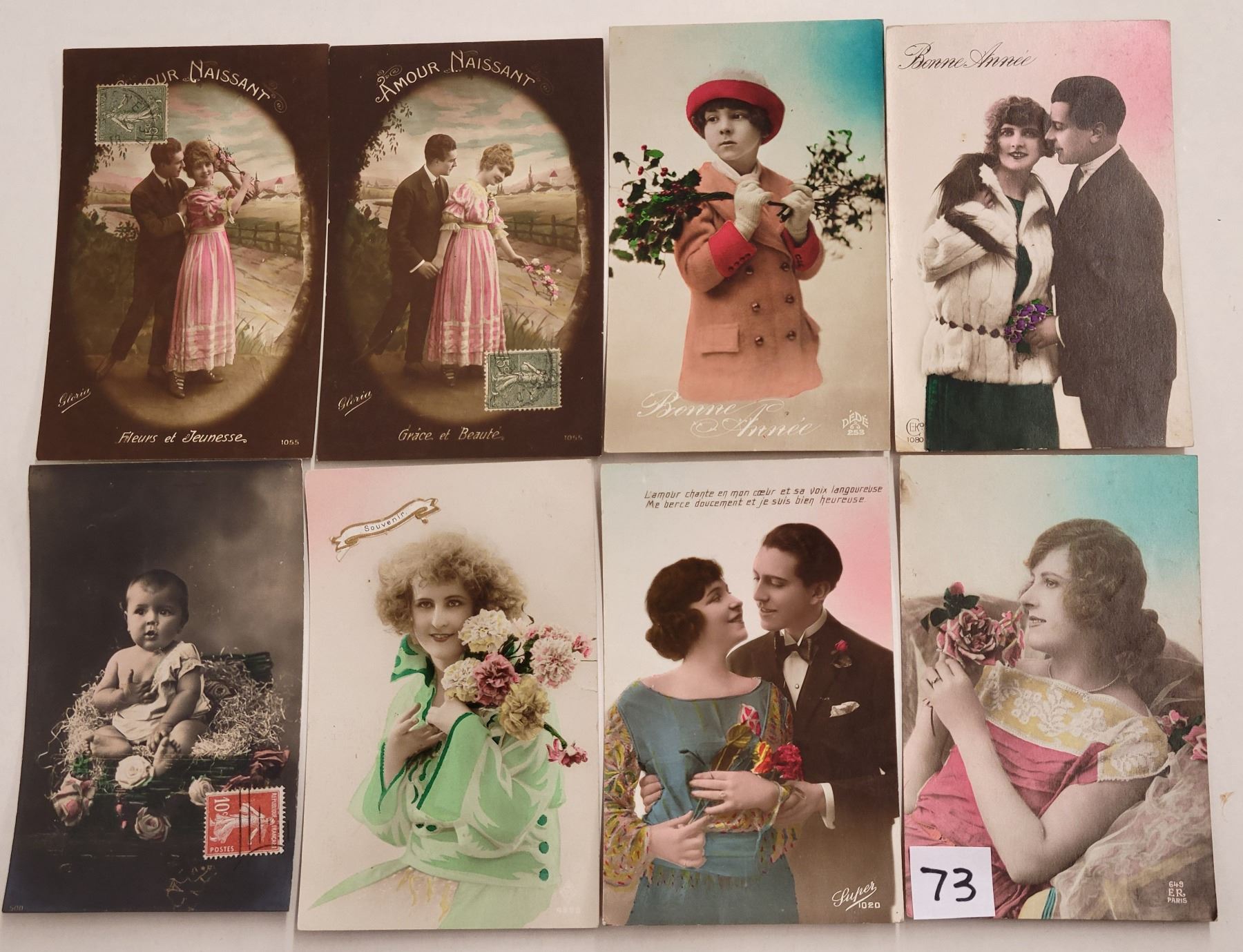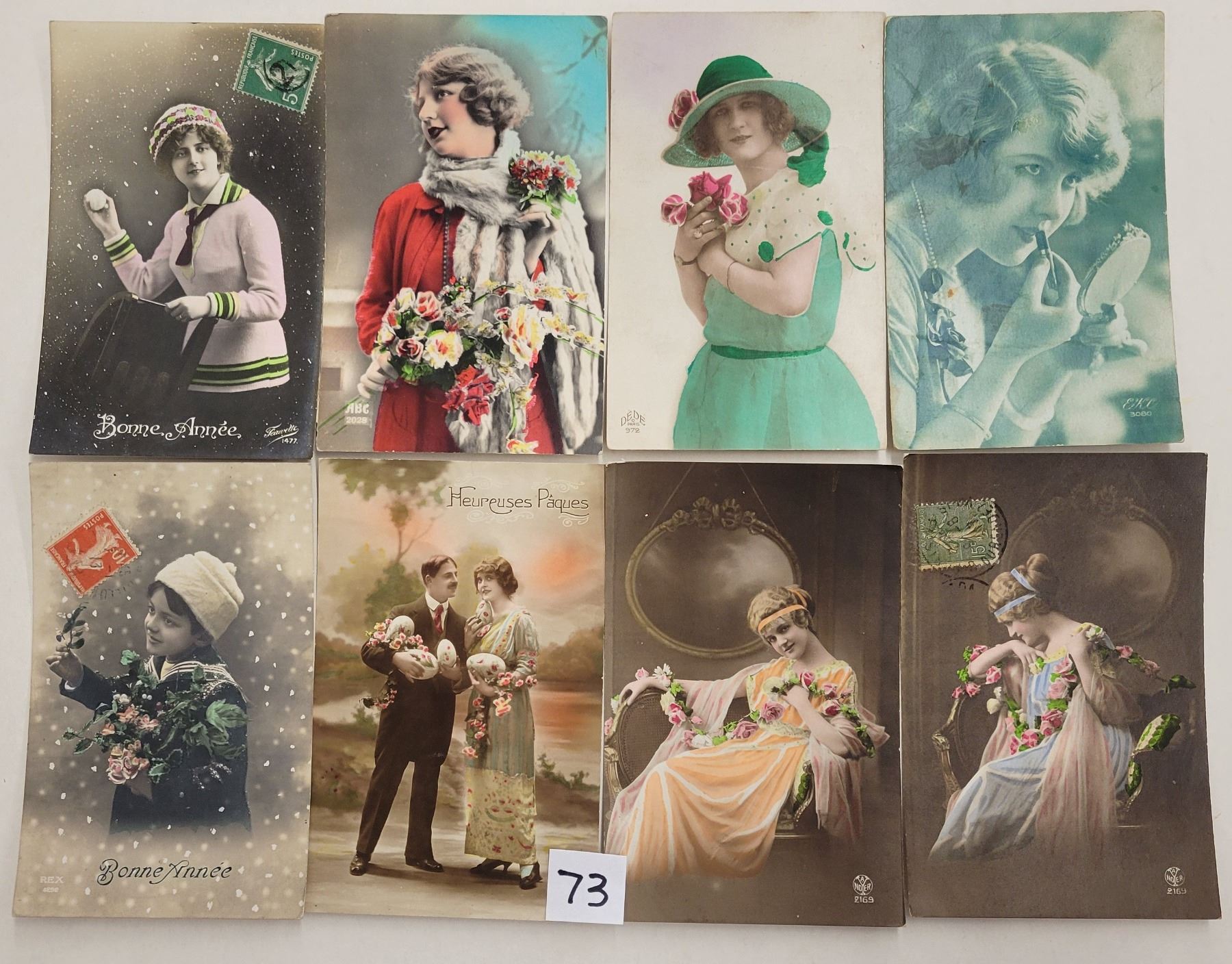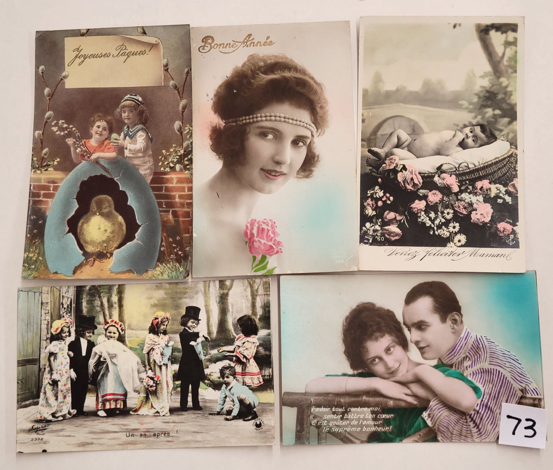 Over 95 tinted photo children & ladies postcards.