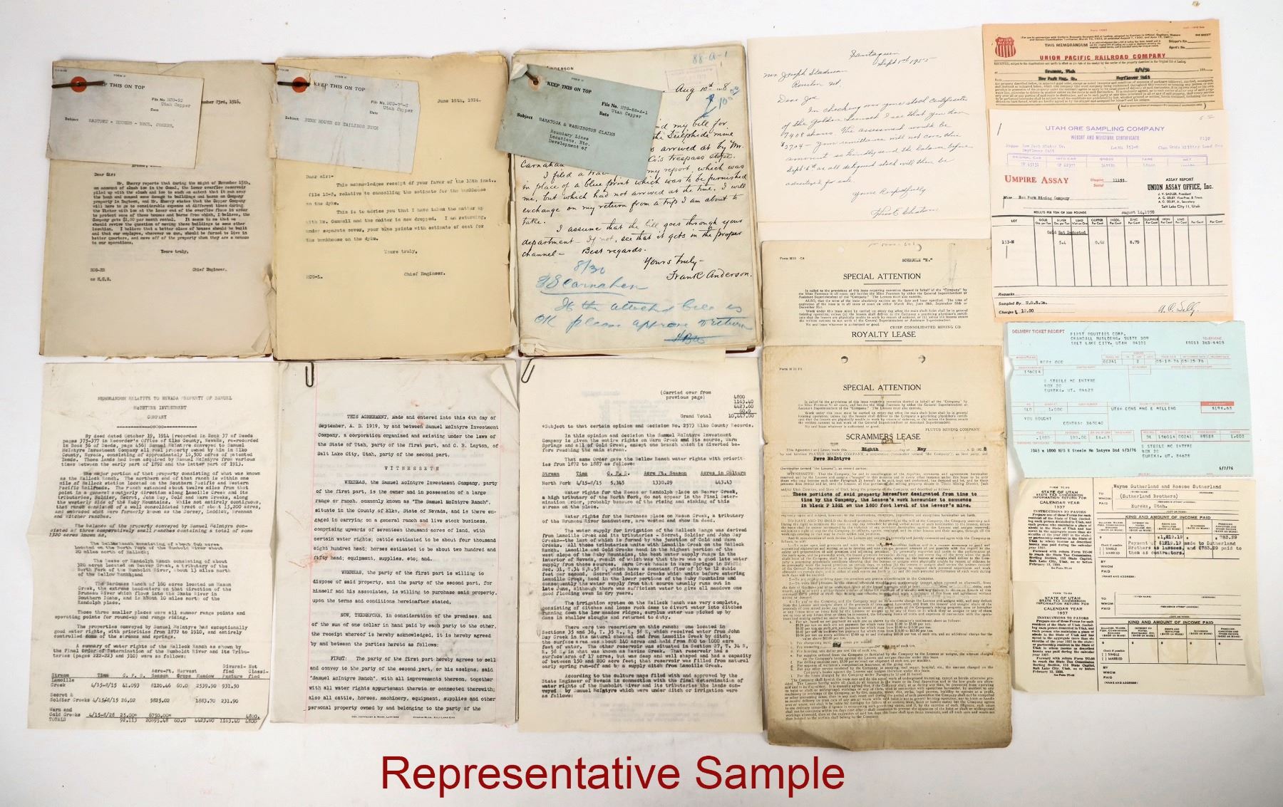 Tintic District Document Archive. 1/2 box of numerous photographs, maps and documents from Tintic District mines c.1920-45. Includes Utah Copper Company, West Toledo Mines, Showers Consolidated, Gold Chain Mines, Mammoth Mining Company. Also includes about 3 inches of important mine reports in xerox form.
