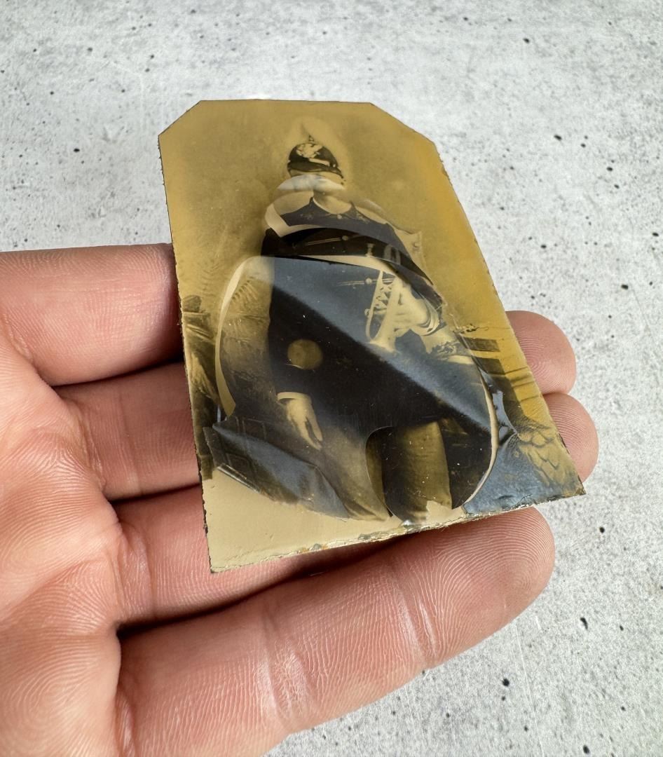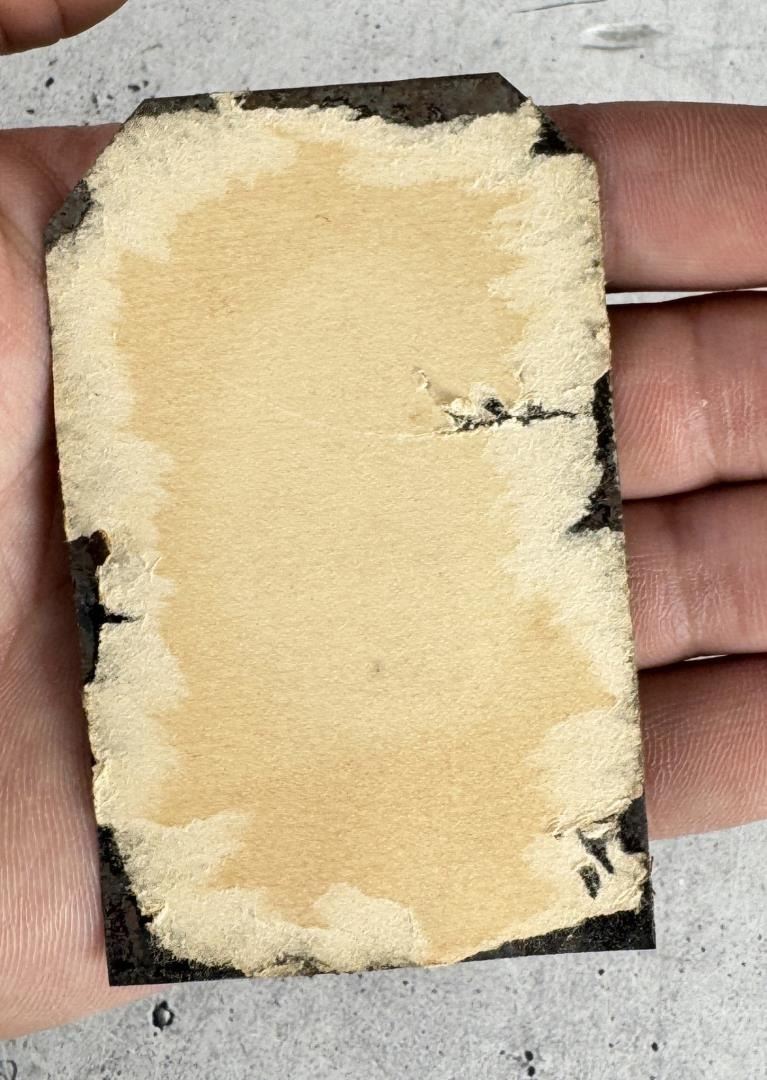 3 1/4" long, 2 1/4" wide. Deterioration as shown.