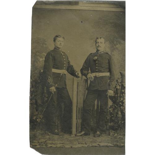 <B>Tintype of Samuel W. Wharton of the Confederate 16th Texas Cavalry,</B></I> 2.25ā x 4ā. Samuel W. Wharton served in Company āEā of the 16th Texas Cavalry during the Civil War. Wharton is shown with an I. B. Smith, and both are dressed in British Army uniforms. Etched into the reverse of the photograph is a notation indicating that Wharton not only served with the 16th Texas Cavalry but also that he fought with the British Army at one time.<BR><BR><b>Shipping:</b> Flat Material, Small (<a target="_blank" href="http://www.heritageauctions.com/common/shipping.php">view shipping information</a>)