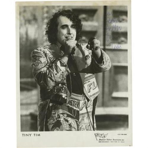 <B>Tiny Tim Signed Photo.</B></I> A b&w 8" x 10" photo inscribed and signed by the singer in blue ballpoint, in Very Fine condition with some staining to the top portion.<BR><BR><b>Shipping:</b> Flat Material, Small (<a target="_blank" href="http://www.heritageauctions.com/common/shipping.php">view shipping information</a>\)