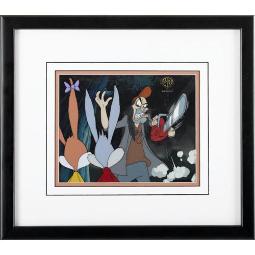 "<B>Tiny Toon Adventures ""How I Spent My Summer Vacation"" Production Cel Original Art (Warner Bros., 1990).</B></I> Buster and Babs set the stage with a no-holds-barred water fight which eventually sends them up the Acme River without an Acme paddle, in this hand-painted cel from Steven Spielberg's ""Tiny Toon Adventures."" The image area measures 9.5"" x 7.5"". Framed and in Excellent condition. Includes a certificate of authenticity. <I>From the collection of Ed Neal</B></I>. "
