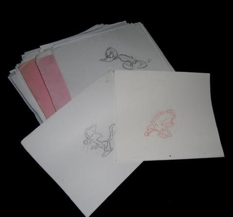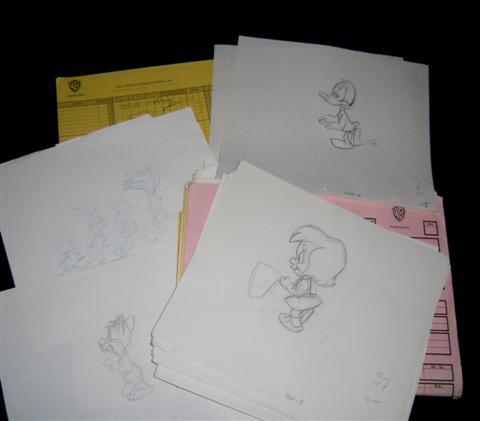 Tiny Toons Animated Series - A very large collection of original hand drawn pencil sketches, on animation paper, that complete full movement. In Warner Brother's Animation folders with animation rundown sheets. Many major characters including; Sylvester, Porky, Tweety, Daffy, Taz and more.