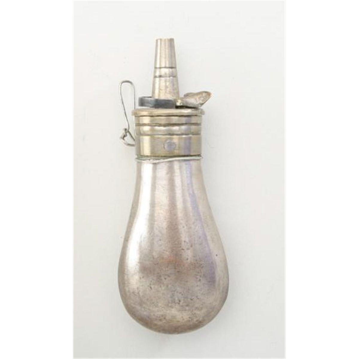 Tiny bag-flask marked “Sikes”, approx. 3” from tip to end, silver-plated over brass, very good condition, 50-60% original silver. Some normal aging. These are often found with American derringers and the smallest ofpocket size pistols from the 1850’s to 60’s era. Caseable. From the Keith Coulter collection. Est: $300 - $600