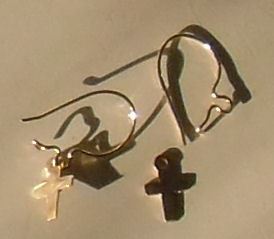 10 kt yellow gold earring, each one is a tiny cross; new;