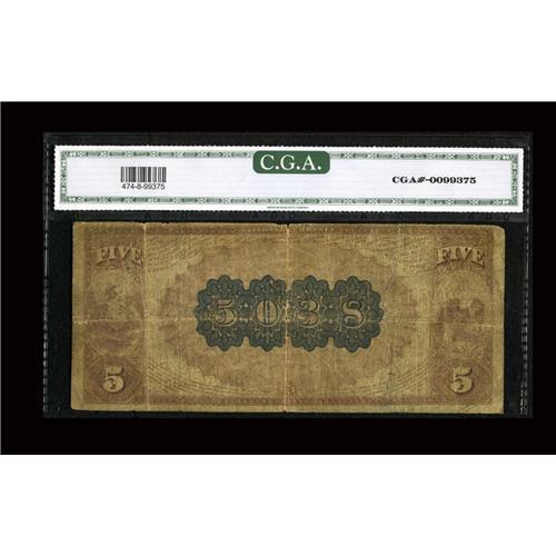 48B. CURRENCY – Notes sold referencing a third-party grading service are sold "as is" without any express or implied warranty, except for a guarantee by Auctioneer that they are genuine. Grading, condition or other attributes of any lot may have a material effect on its value, and the opinion of others, including independent grading services such as PCGS Currency, PMG, and CGA may differ with that of Auctioneer. Auctioneer shall not be bound by any prior or subsequent opinion, determination, or certification by any independent grading service. The grades assigned by any grading service to any note offered in any Heritage Currency Auctions of America sale represent the opinion of that grading service only,and may differ in material respects from the grade assigned to the same note in previous sales by HCAA or other auction companies, or from the grade that would be assigned by any other grading service. HCAA is unable to view any third party graded item outside of the holder, and specifically disclaims any liability of any kind to bidders who bid on third party graded items for mistakes of commission or omission by any grading service. Bidders are hereby notified that currency grading standards have changed in the past and are subject to change in the future, and that the only remedy bidder has with respect to third party graded notes is to deal directly with the grading service certifying the item. Bidders are also advised that Auctioneer makes no representation or guarantee that any item obtained by Bidder will be assigned any particular grade by any particular grading service, and as noted herein, Bidder specifically waives any claim to right of return of any item because of the opinion, determination, or certification, or lack thereof, by any independent grading service. Certain warranties may be available from the grading services and the Bidder is referred to them for further details: Paper Money Guaranty (PMG), PO Box 4711, Sarasota FL 34230; PCGS Currency, PO Box 9458, Newport Beach, CA 92658; Currency Grading & Authentication (CGA), PO Box 418, Three Bridges, NJ 08887.