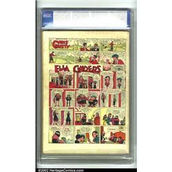 Tip Top Comics #1 (United Features Syndicate, 1936) CGC VG+ 4.5 Off-white to white pages. The cover to this incredibly early book has a great image of Tarzan and L'il Abner duking it out in the boxing ring. This premiere issue features the first comic book appearances of many characters, including Tarzan by Hal Foster, Fritzi Ritz, Ella Cinders, Bronco Bill, L'il Abner and Captain and the Kids. This is a very solid copy, one of the few left in existence. Overstreet 2002 GD 2.0 value = $944; FN 6.0 value = $2,832. Important notice: We expect to be auctioning lots at the rate of 200-250 per hour. Sometimes eBay Premier live bid software cannot keep up with that pace, so we strongly recommend that you place a realistic proxy bid now as insurance to avoid disappointment. Also please note that all Heritage/CAA lots purchased through eBay Premier carry a 20% Buyer's Premium.