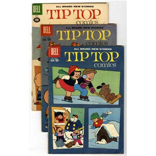 <B>Tip Top Comics Group (United Features Syndicate, 1958-61) Condition: Average VG.</B></I> Includes #213 (ink scribbling on the cover - GD), 220, 222, #224 (cover detached - GD). Peanuts appear in most issues. Approximate Overstreet value for group = $50. <I> From the Madison Monk Collection.</B></I><BR><BR><b>Shipping:</b> Comics - Unslabbed (<a target="_blank" href="http://www.heritageauctions.com/common/shipping.php">view shipping information</a>)
