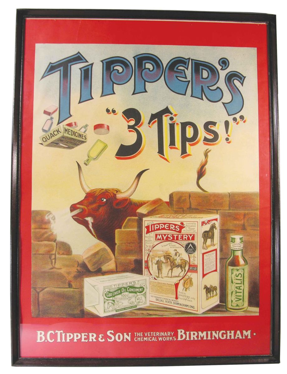 Tippers Veterinary Paper Poster. The B. C. Tipper and Son Veterinary Chemical Works, Birmingham. Tear at 11:00 in border otherwise excellent condition. 32 X 43 inches.
