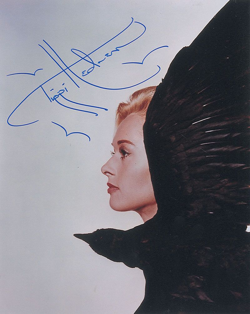 Color satin-finish 8 x 10 photo of Hedren and a large bird flying close by, signed in person in blue felt tip, adding a few quick bird sketches. In very fine condition. Originally obtained by in-person specialist Mike Wehrmann.