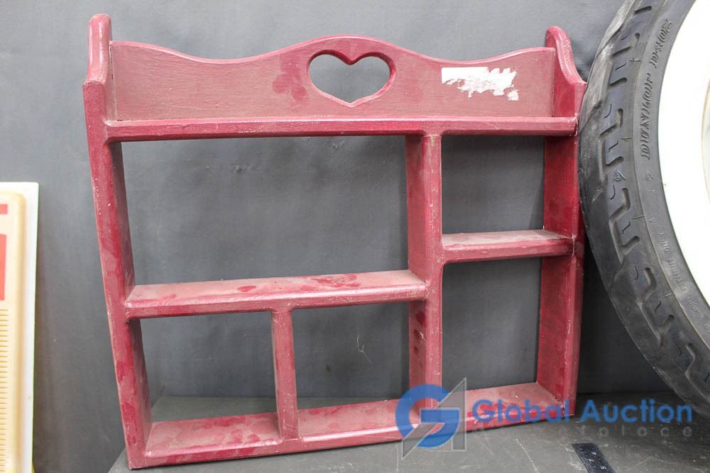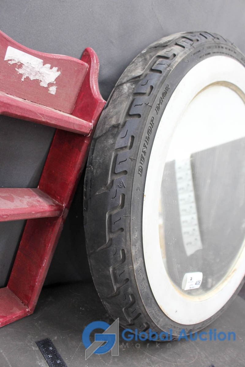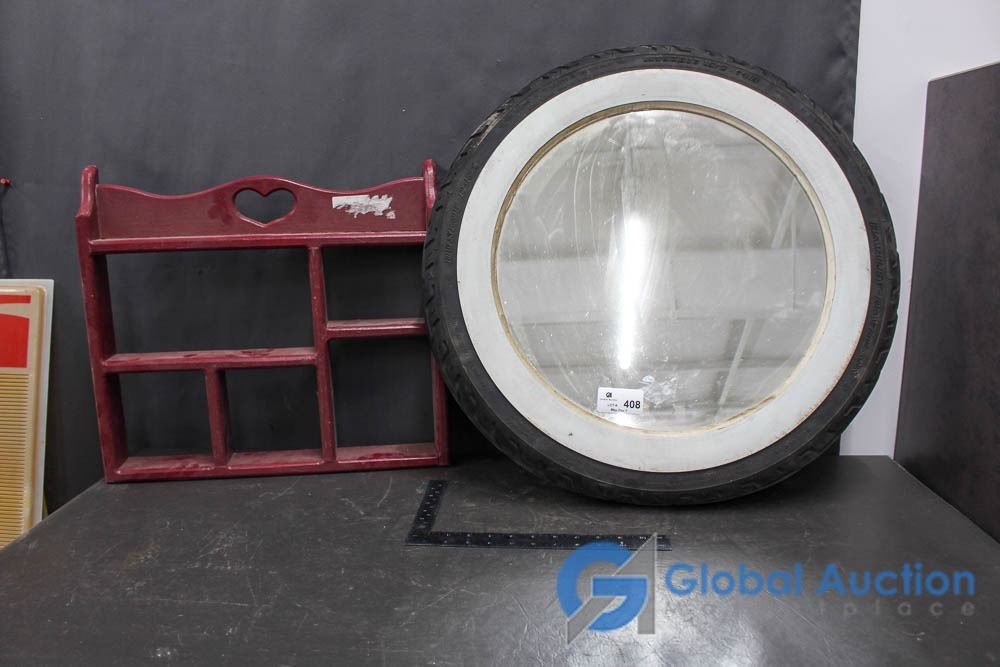 Tire Converted into Wall Mirror and Wood Wall Shelf