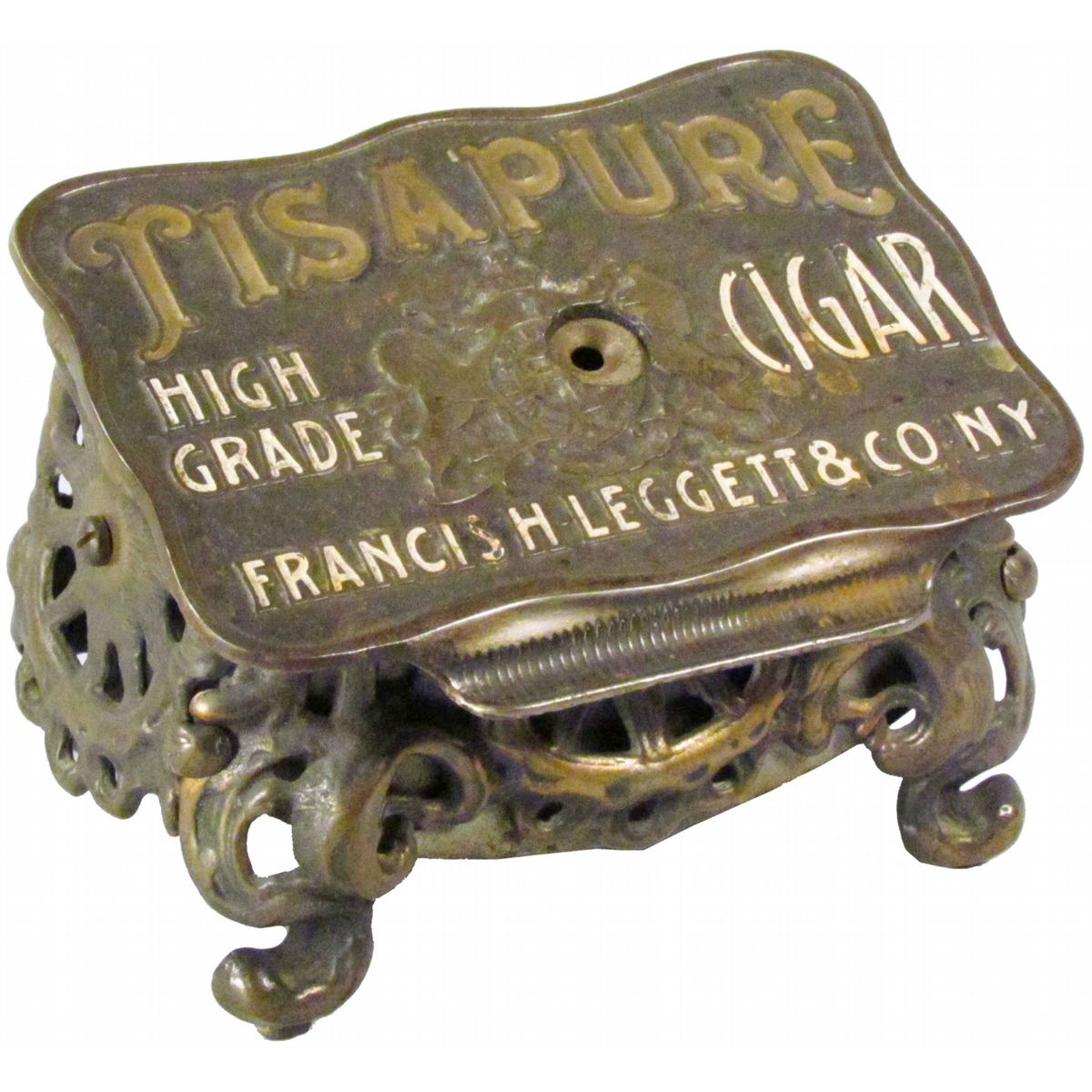 "Tis A Pure" High Grade Cigar Tip Cutter. Francus H Keggett & Co. NY. Brunhoff Mfg. Patent 1901. Cast Iron. Excellent working condition. 6 1/2 X 4 3/4 X 5 1/8 inches.