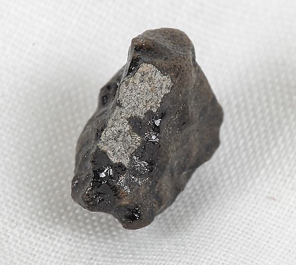 Bubbles within the meteorite could still contain traces of the Martian atmosphere. The glossy black fusion crust looks like glass being so fresh and the interior is a pale gray color with some pale yellow olivine macrocrysts. The host rock solidified out of Martian magma 400-500 million years age and was blasted off the surface of Mars by an asteroid impact around one million years ago.