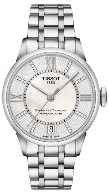 Model: T099.207.11.116.00 - Case,; MATERIALSTAINLESS STEEL = [Case Diameter32], [Case Thickness10.96mm], [BezelFixed], [Case BackSkeleton], [Water Resistant50 Meters - 165 feet], [CrystalScratch Resistant Sapphire], Dial,; COLORMOTHER OF PEARL = Movement,; TYPEAUTOMATIC, 80 HOUR POWER RESERVE = [CrownPush In], Band,; CLASPDEPLOYMENT = [TypeStainless Steel], (Usually ships in 1 to 2 weeks.)
