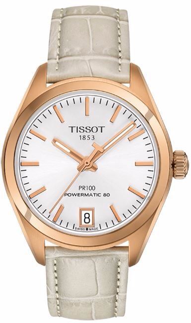 Model: T101.207.36.031.00 - CASE = [Material:Stainless Steel], [Case Diameter:33], [Case Thickness:9.79mm], [Bezel:Fixed], [Case Back:Skeleton], [Water Resistant:100 Meters - 330 Feet], [Crystal:Scratch Resistant Sapphire],; DIAL = [Color:Silver],; MOVEMENT = [Type:Automatic, 80 Hour Power Reserve], [Crown:Push In],; BAND = [Clasp:Tang], [Type:Cream Leather], (Usually ships in 1 to 2 weeks.)