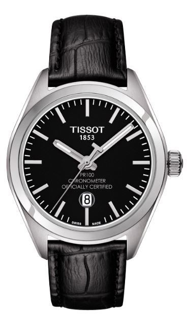 Model: T101.251.16.051.00 - CASE = [Material:Stainless Steel], [Case Diameter:33], [Case Thickness:9mm], [Bezel:Fixed], [Case Back:Solid], [Water Resistant:100 Meters - 330 Feet], [Crystal:Scratch Resistant Sapphire], DIAL = [Color:Black], MOVEMENT = [Type:Quartz], [Crown:Push In], BAND = [Clasp:Tang], [Type:Black Leather], (Usually ships in 1 to 2 weeks.)