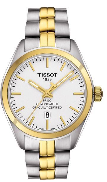 Model: T101.251.22.031.00 - CASE = [Material:Stainless Steel with Yellow Gold PVD Coating], [Case Diameter:33], [Case Thickness:9mm], [Bezel:Fixed], [Case Back:Solid], [Water Resistant:100 Meters - 330 Feet], [Crystal:Scratch Resistant Sapphire], DIAL = [Color:White], MOVEMENT = [Type:Quartz], [Crown:Push In], BAND = [Clasp:Folding], [Type:Two-Tone Stainless Steel], (Usually ships in 1 to 2 weeks.)