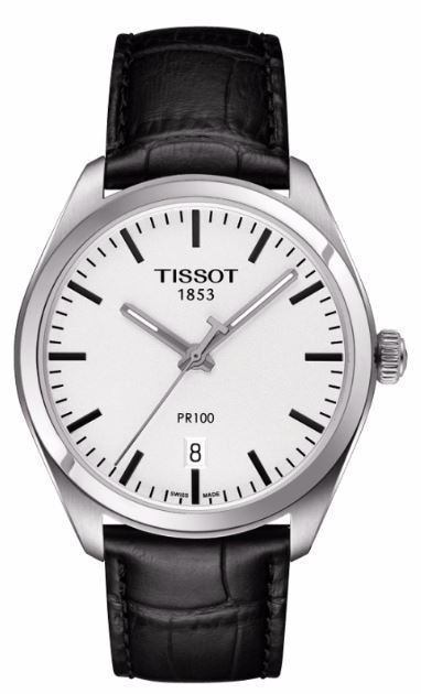 Model: T101.410.16.031.00 - CASE = [Material:Stainless Steel], [Case Diameter:39], [Case Thickness:9mm], [Bezel:Fixed], [Case Back:Solid], [Water Resistant:100 Meters - 300 Feet], [Crystal:Scratch Resistant Sapphire],; DIAL = [Color:Silver],; MOVEMENT = [Type:Quartz], [Crown:Push In],; BAND = [Clasp:Tang], [Type:Black Leather], (Usually ships in 1 to 2 weeks.)