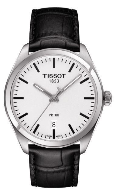 Model: T101.410.16.031.00 - CASE = [Material:Stainless Steel], [Case Diameter:39], [Case Thickness:9mm], [Bezel:Fixed], [Case Back:Solid], [Water Resistant:100 Meters - 300 Feet], [Crystal:Scratch Resistant Sapphire], DIAL = [Color:Silver], MOVEMENT = [Type:Quartz], [Crown:Push In], BAND = [Clasp:Tang], [Type:Black Leather], (Usually ships in 1 to 2 weeks.)