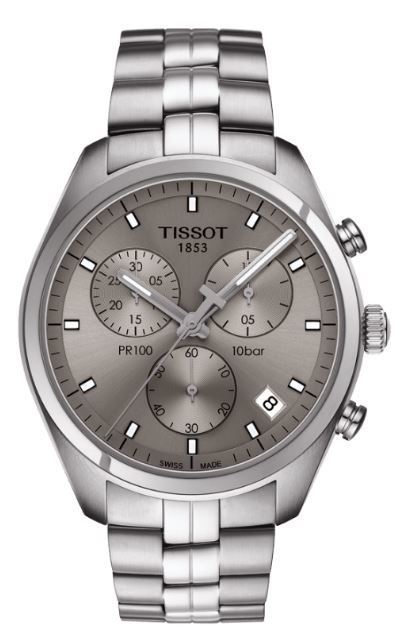 Model: T101.417.11.071.00 - CASE = [Material:Stainless Steel], [Case Diameter:41], [Case Thickness:10.71mm], [Bezel:Fixed], [Case Back:Solid], [Water Resistant:100 Meters - 330 Feet], [Crystal:Scratch Resistant Sapphire], DIAL = [Color:Grey], MOVEMENT = [Type:Quartz Chronograph], [Crown:Push In], BAND = [Clasp:Deployment], [Type:Stainless Steel], (Usually ships in 1 to 2 business days.)