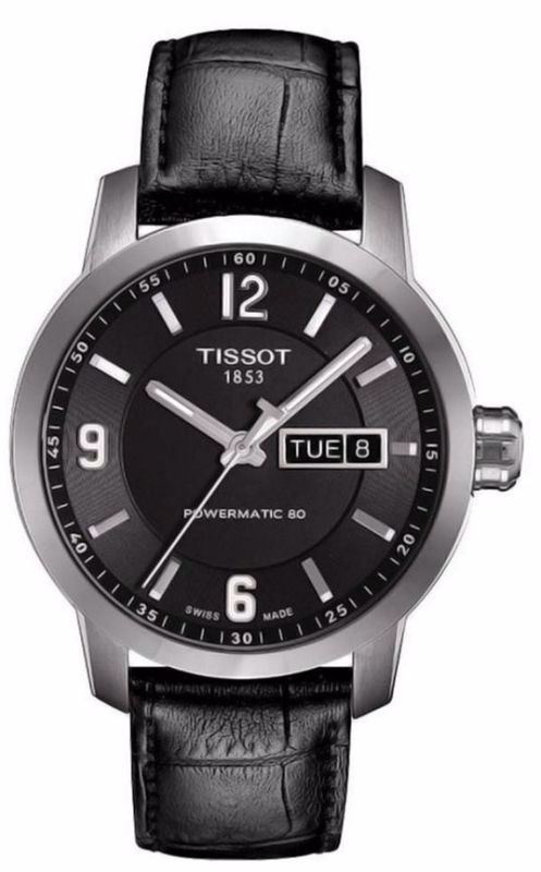 Model: T055.430.16.057.00 - CASE = [Material:Stainless Steel], [Case Diameter:39], [Case Thickness:11.9mm], [Bezel:Fixed], [Case Back:Skeleton], [Water Resistant:200 Meters - 660 Feet], [Crystal:Scratch Resistant Sapphire],; DIAL = [Color:Black Arabic Index],; MOVEMENT = [Type:Automatic],; BAND = [Clasp:Deployment], [Type:Black Leather], (In Stock - Ready to ship.)