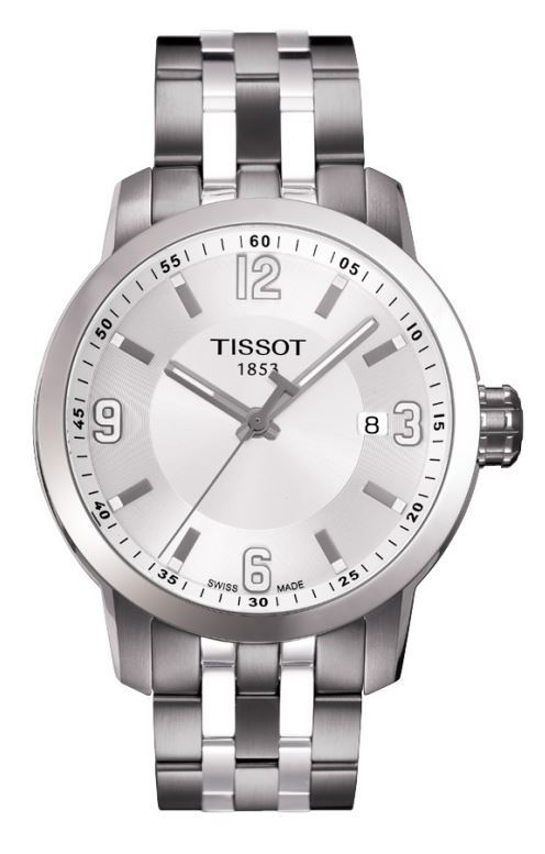 Model: T055.410.11.017.00 - Case,; MATERIALSTAINLESS STEEL = [Case Diameter39], [Case Thickness10.55mm], [BezelFixed], [Case BackSolid], [Water Resistant200 Meters - 660 Feet], [CrystalScratch Resistant Sapphire], Dial,; COLORWHITE ARABIC INDEX = Movement,; TYPEQUARTZ = [CrownScrew Down], Band,; CLASPDEPLOYMENT = [TypeStainless Steel], (Usually ships in 1 to 2 business days.)