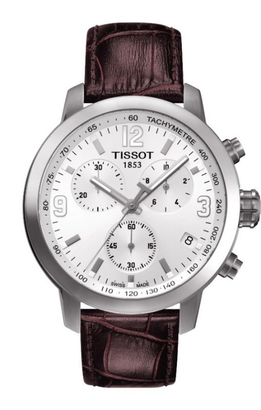Model: T055.417.16.017.01 - CASE = [Material:Stainless Steel], [Case Diameter:42], [Case Thickness:12.02mm], [Bezel:Fixed], [Case Back:Solid], [Water Resistant:200 Meters - 660 Feet], [Crystal:Scratch Resistant Sapphire], DIAL = [Color:Silver Arabic Index], MOVEMENT = [Type:Quartz], [Crown:Screw Down], BAND = [Clasp:Deployment], [Type:Brown Leather], (Usually ships in 1 to 2 business days.)