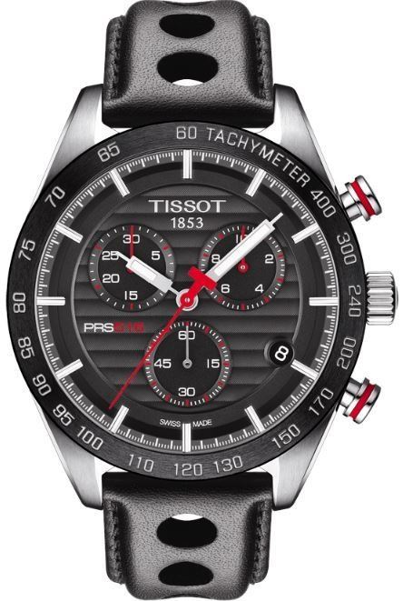 Model: T100.417.16.051.00 - CASE = [Material:Stainless Steel], [Case Diameter:42], [Case Thickness:12.12mm], [Bezel:Fixed], [Case Back:Solid], [Water Resistant:100 Meters - 330 Feet], [Crystal:Scratch Resistant Sapphire],; DIAL = [Color:Black],; MOVEMENT = [Type:Quartz Chronograph], [Crown:Push In],; BAND = [Clasp:Deployment], [Type:Black Leather], (Usually ships in 1 to 2 weeks.)
