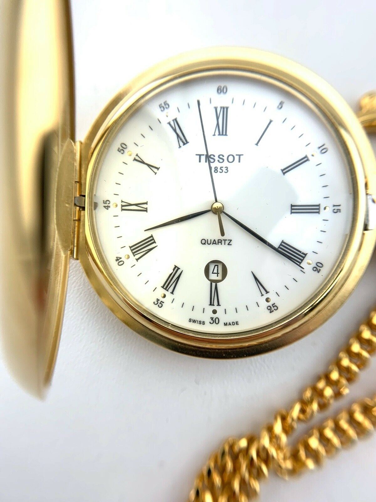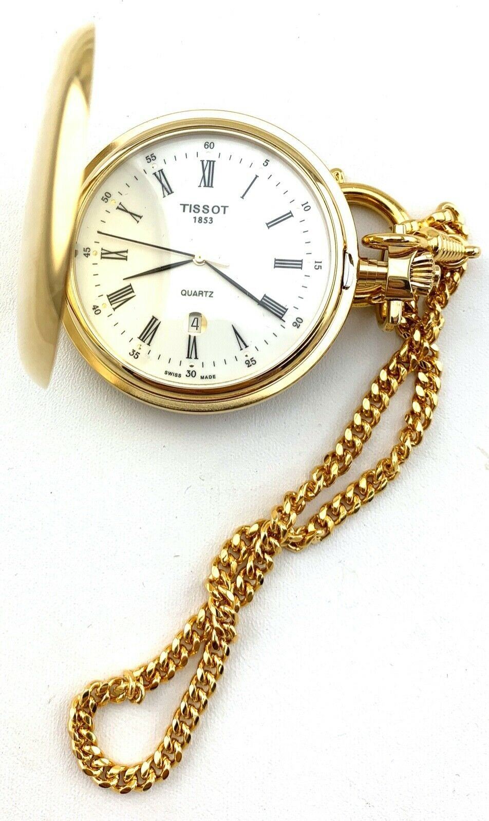 TISSOT GOLD TONE POCKET WATCH WITH CHAIN GOLD TONE CASE NEW BATTERY