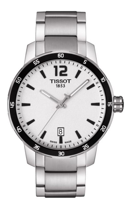 Model: T095.410.11.037.00 - CASE = [Material:Stainless Steel], [Case Diameter:40], [Case Thickness:9.12mm], [Bezel:Fixed], [Case Back:Solid], [Water Resistant:100 Meters - 330 Feet], [Crystal:Scratch Resistant Sapphire], DIAL = [Color:Silver with Arabic + Index Numerals], MOVEMENT = [Type:Quartz], [Crown:Screw Down], BAND = [Clasp:Folding], [Type:Stainless Steel],  (Usually ships in 1 to 2 business days.)