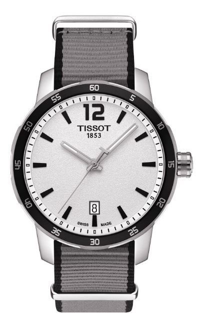 Model: T095.410.17.037.00 - CASE = [Material:Stainless Steel], [Case Diameter:40], [Case Thickness:9.12mm], [Bezel:Fixed], [Case Back:Solid], [Water Resistant:100 Meters - 330 Feet], [Crystal:Scratch Resistant Sapphire], DIAL = [Color:Silver], MOVEMENT = [Type:Quartz], [Crown:Push In], BAND = [Clasp:Tang], [Type:Grey Fabric], (Usually ships in 1 to 2 business days.)