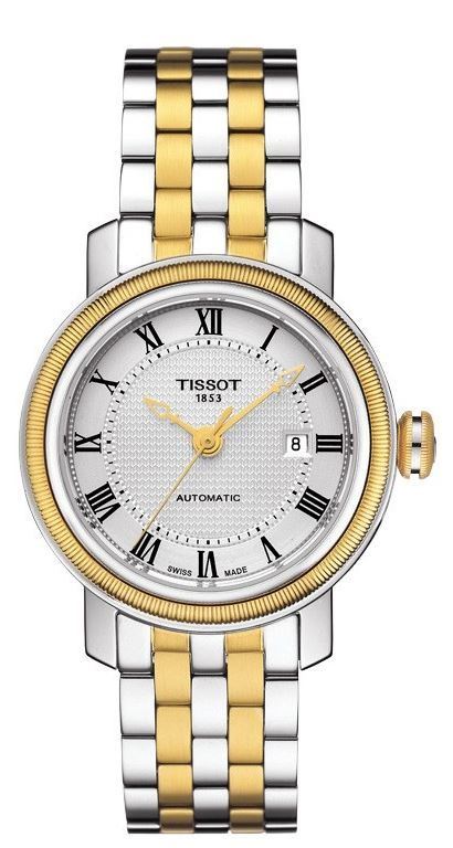 Model: T097.007.22.033.00 - CASE = [Material:Stainless Steel], [Case Diameter:29], [Case Thickness:8.7mm], [Bezel:Fixed], [Case Back:Skeleton], [Water Resistant:50 Meters - 165 Feet], [Crystal:Scratch Resistant Sapphire], DIAL = [Color:Silver with Roman Numerals], MOVEMENT = [Type:Automatic], [Crown:Push In], BAND = [Clasp:Deployment], [Type:Two Tone Stainless Steel], (Usually ships in 1 to 2 weeks.)