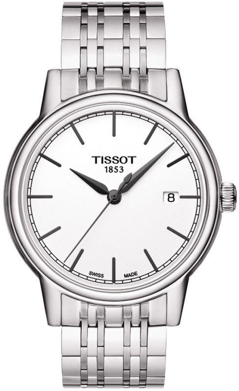 Model: T085.410.11.011.00 - CASE = [Material:Stainless Steel], [Case Diameter:39.2], [Case Thickness:8.35mm], [Case Back:Solid], [Water Resistant:30 Meters/100 Feet], [Crystal:Scratch Resistant Sapphire Crystal], DIAL = [Color:White], MOVEMENT = [Type:Battery Powered Quartz], BAND = [Clasp:Double Folding Deployment], [Type:Stainless Steel], (In Stock - Ready to ship.)
