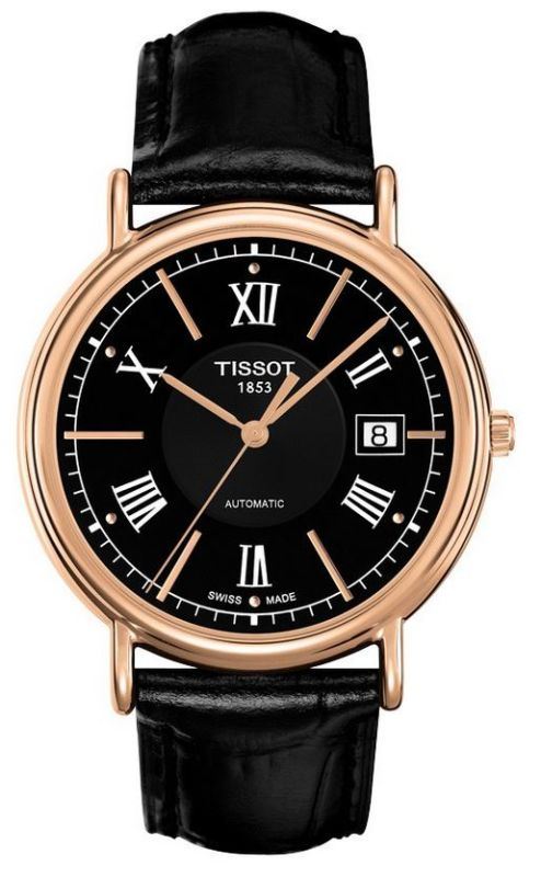 Model: T907.407.76.058.00 - CASE = [Material:18kt Rose Gold], [Case Diameter:40], [Case Thickness:8.85mm], [Water Resistant:30 Meters - 100 Feet], [Crystal:Scratch Resistant Sapphire], DIAL = [Color:Black Roman Index], MOVEMENT = [Type:Automatic], BAND = [Clasp:Deployment], [Type:Black Leather], (Usually ships in 1 to 2 weeks.)