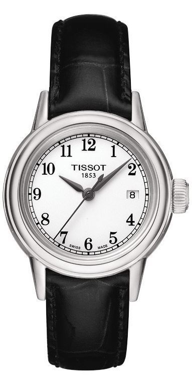 Model: T085.210.16.012.00 - CASE = [Material:Stainless Steel], [Case Diameter:28.5], [Case Thickness:8.2mm], [Water Resistant:30 Meters - 100 Feet], [Crystal:Scratch Resistant Sapphire], DIAL = [Color:White with Arabic + Index Numerals], MOVEMENT = [Type:Quartz], BAND = [Clasp:Tang], [Type:Black Leather], (Usually ships in 1 to 2 weeks.)