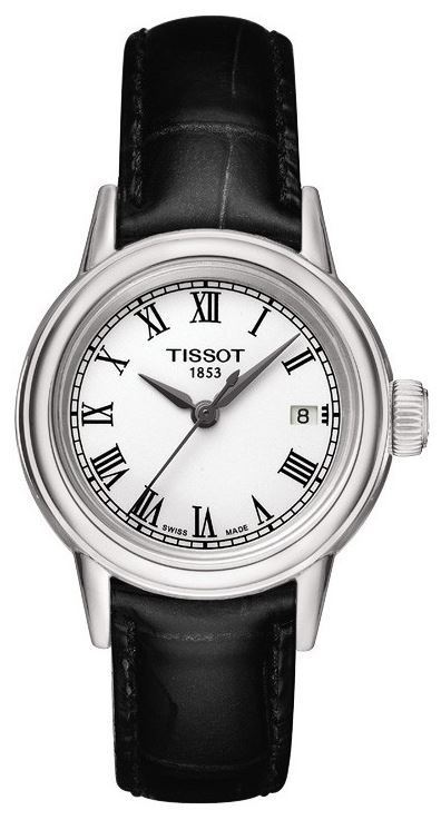 Model: T085.210.16.013.00 - CASE = [Material:Stainless Steel], [Case Diameter:28.5], [Case Thickness:8.2mm], [Bezel:Fixed], [Case Back:Solid], [Water Resistant:30 Meters - 100 Feet], [Crystal:Scratch Resistant Sapphire], DIAL = [Color:White with Roman Numerals], MOVEMENT = [Type:Quartz], BAND = [Clasp:Tang], [Type:Black Leather], (Usually ships in 1 to 2 weeks.)