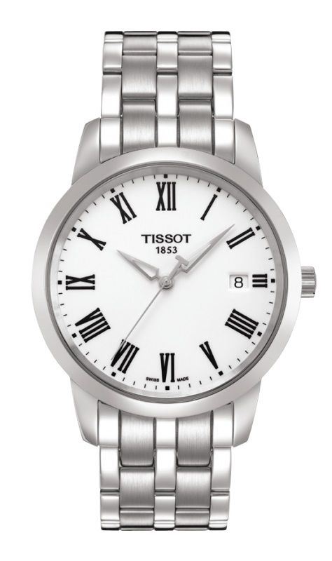 Model: T033.410.11.013.01 - CASE = [Material:Stainless Steel], [Case Diameter:38], [Case Thickness:7.4mm], [Case Back:Solid], [Water Resistant:30 Meters/100 Feet], [Crystal:Scratch Resistant Sapphire Crystal], DIAL = [Color:White], MOVEMENT = [Type:Battery Powered Quartz], BAND = [Clasp:Double Folding Deployment], [Type:Stainless Steel], (Usually ships in 1 to 2 business days.)
