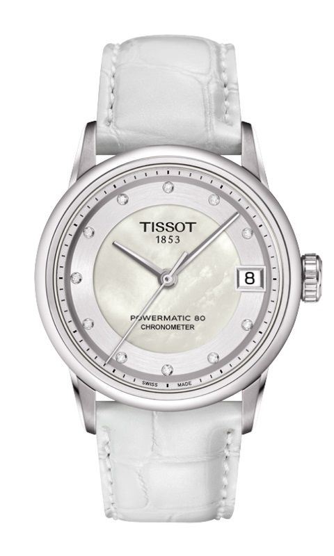 Model: T086.208.16.116.00 - Case,; MATERIALSTAINLESS STEEL = [Case Diameter33], [Case Thickness9.75mm], [Case BackSee-thru Sapphire Crystal], [Water Resistant50 Meters/ 165 Feet], [CrystalScratch Resistant Sapphire Crystal], Dial,; COLORMOTHER OF PEARL = Movement,; TYPEAUTOMATIC SELF WINDING = Band,; CLASPDOUBLE FOLDING DEPLOYMENT = [TypeWhite Crocodile Leather], (Usually ships in 1 to 2 weeks.)