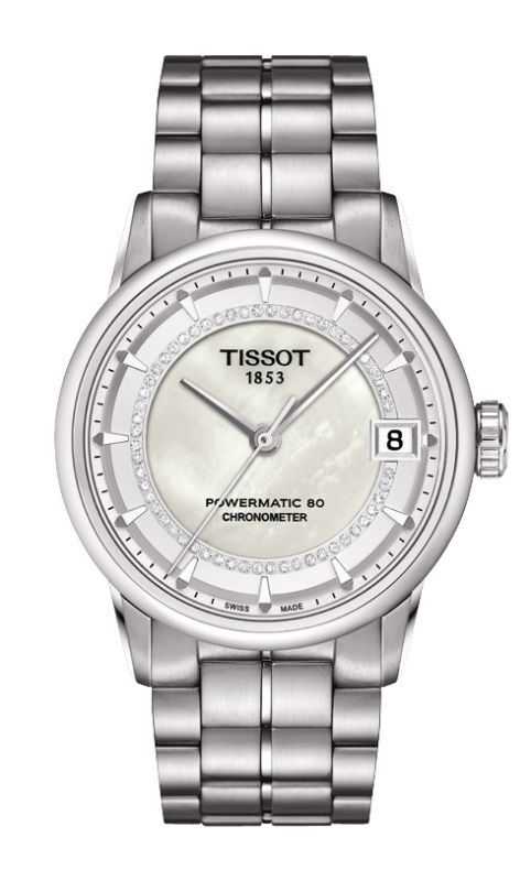 Model: T086.208.11.116.00 - CASE = [Material:Stainless Steel], [Case Diameter:33], [Case Back:See-thru Sapphire Crystal], [Water Resistant:50 Meters/ 165 Feet], [Crystal:Scratch Resistant Sapphire Crystal], DIAL = [Color:Mother of Pearl with Diamonds], MOVEMENT = [Type:Automatic Self Winding], BAND = [Clasp:Double Folding Deployment], [Type:Stainless Steel], (Usually ships in 1 to 2 weeks.)
