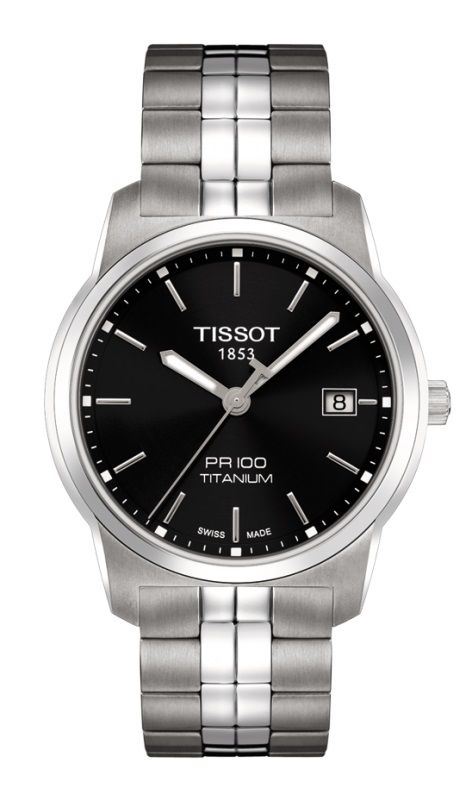 Model: T049.410.44.051.00 - CASE = [Material:Titanium], [Case Diameter:38], [Case Thickness:8.45mm], [Case Back:Solid], [Water Resistant:100 Meters/ 330 Feet], [Crystal:Scratch Resistant Sapphire Crystal], DIAL = [Color:Black], MOVEMENT = [Type:Battery Powered Quartz], BAND = [Clasp:Push Button Foldover Clasp], [Type:Titanium], (In Stock - Ready to ship.)
