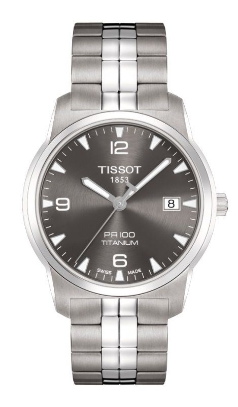 Model: T049.410.44.067.00 - CASE = [Material:Titanium], [Case Diameter:38], [Case Thickness:8.45mm], [Case Back:Solid], [Water Resistant:100 Meters/ 330 Feet], [Crystal:Scratch Resistant Sapphire Crystal], DIAL = [Color:Anthracite], MOVEMENT = [Type:Battery Powered Quartz], BAND = [Clasp:Push Button Foldover Clasp], [Type:Titanium], (Usually ships in 1 to 2 weeks.)