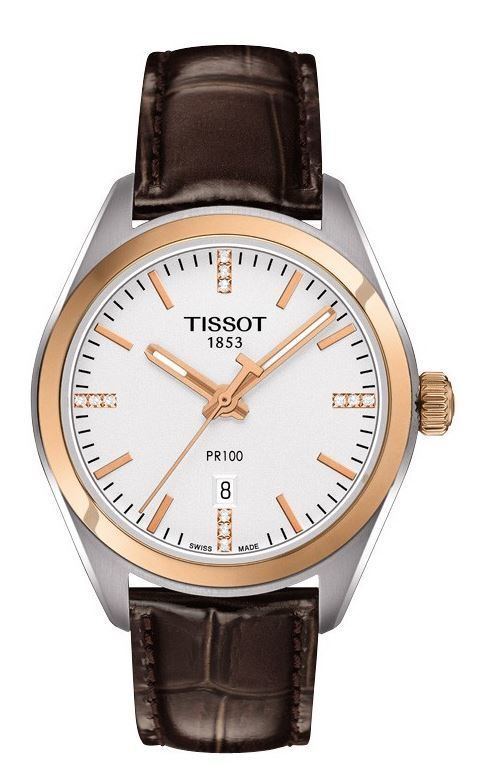 Model: T101.210.26.036.00 - CASE = [Material:Stainless Steel], [Case Diameter:33], [Case Thickness:9mm], [Bezel:Fixed], [Case Back:Solid], [Water Resistant:100 Meters - 330 Feet], [Crystal:Scratch Resistant Sapphire], DIAL = [Color:Silver with Index + Diamond Numerals], MOVEMENT = [Type:Quartz], BAND = [Clasp:Tang], [Type:Brown Leather], (Usually ships in 1 to 2 business days.)