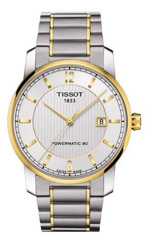 Model: T087.407.55.037.00 - CASE = [Material:Titanium], [Case Diameter:40], [Case Thickness:22mm], [Bezel:Fixed], [Case Back:Solid], [Water Resistant:50 Meters - 165 Feet], [Crystal:Scratch Resistant Sapphire], DIAL = [Color:Silver Arabic Index], MOVEMENT = [Type:Automatic], [Crown:Push In], BAND = [Clasp:Deployment], [Type:Titanium], (Usually ships in 1 to 2 weeks.)