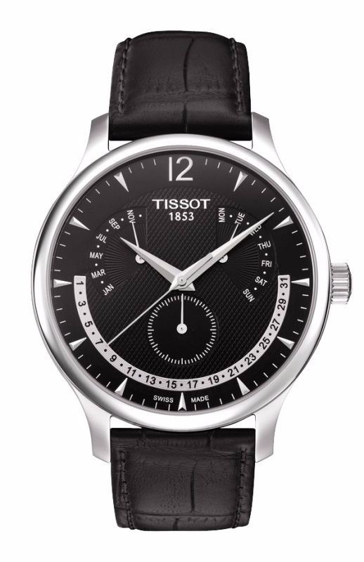 Model: T063.637.16.057.00 - CASE = [Material:Stainless Steel], [Case Diameter:42], [Case Thickness:7.47mm], [Case Back:Solid], [Water Resistant:30 Meters/100 Feet], [Crystal:Scratch Resistant Sapphire Crystal],; DIAL = [Color:Black],; MOVEMENT = [Type:Battery Powered Quartz],; BAND = [Clasp:Double Folding Deployment], [Type:Black Crocodile Leather], (Usually ships in 1 to 2 business days.)