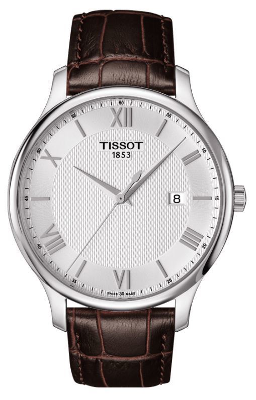 Model: T063.610.16.038.00 - CASE = [Material:Stainless Steel], [Case Diameter:42], [Case Thickness:7.47mm], [Bezel:Fixed], [Case Back:Solid], [Water Resistant:30 Meters - 100 Feet], [Crystal:Scratch Resistant Sapphire], DIAL = [Color:Silver with Roman + Index Numerals], MOVEMENT = [Type:Quartz], BAND = [Clasp:Deployment], [Type:Brown Leather], (Usually ships in 1 to 2 weeks.)