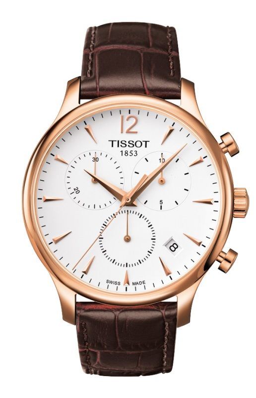 Model: T063.617.36.037.00 - CASE = [Material:Stainless Steel with Rose Gold Tone PVD], [Case Diameter:42], [Case Thickness:11.07mm], [Case Back:Solid], [Water Resistant:30 Meters/100 Feet], [Crystal:Scratch Resistant Sapphire Crystal], DIAL = [Color:Silver], MOVEMENT = [Type:Battery Powered Quartz], BAND = [Clasp:Double Folding Deployment], [Type:Brown Crocodile Leather], (In Stock - Ready to ship.)
